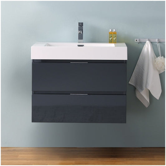Fresca Valencia 30" Dark Slate Gray Wall Hung Modern Bathroom Vanity