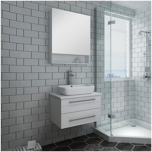 Lucera 24 White Wall Hung Vessel Sink Modern Bathroom Vanity w/ Medicine Cabinet