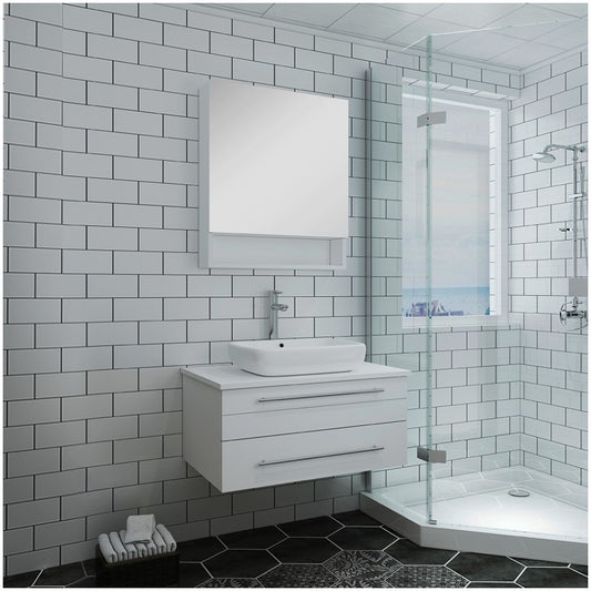 Lucera 30 White Wall Hung Vessel Sink Modern Bathroom Vanity w/ Medicine Cabinet
