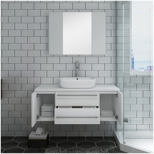 Lucera 42 White Wall Hung Vessel Sink Modern Bathroom Vanity w/ Medicine Cabinet