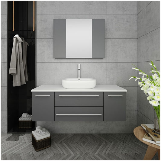 Lucera 48" Gray Wall Hung Vessel Sink Modern Bathroom Vanity w/ Medicine Cabinet