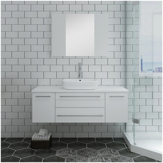 Lucera 48 White Wall Hung Vessel Sink Modern Bathroom Vanity w/ Medicine Cabinet
