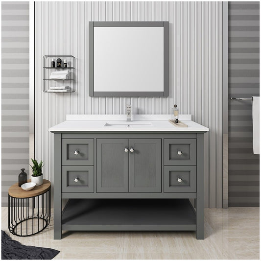 Manchester Regal 48" Gray Wood Veneer Traditional Bathroom Vanity w/ Mirror