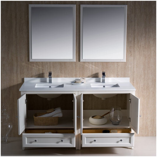 Oxford 60" Antique White Traditional Double Sink Bathroom Vanity, FVN20-3030AW