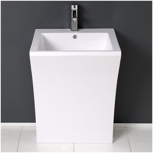 Quadro 23" White Pedestal Sink w/ Medicine Cabinet - Modern Bathroom Vanity