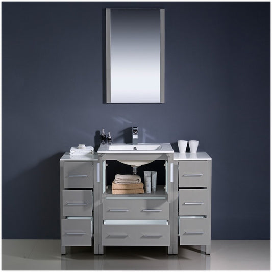Torino 48" Gray Modern Bathroom Vanity w/ 2 Side Cabinets & Integrated Sink