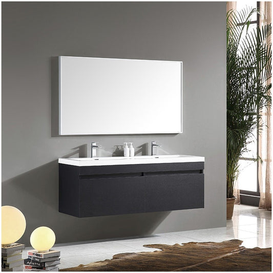 Fresca Largo 57" Black Modern Bathroom Vanity w/ Wavy Double Sinks