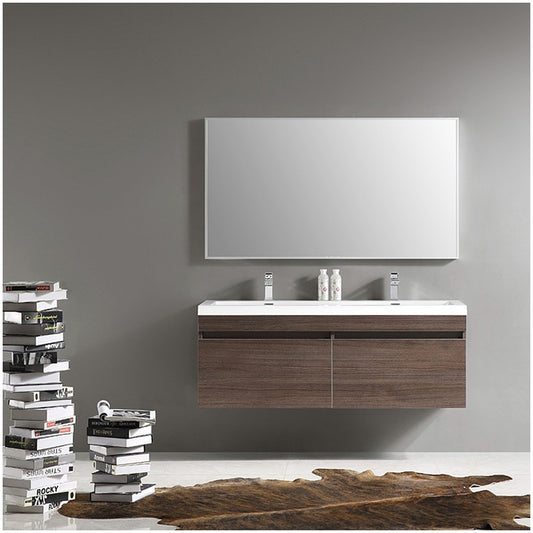 Fresca Largo 57" Gray Oak Modern Bathroom Vanity w/ Wavy Double Sinks