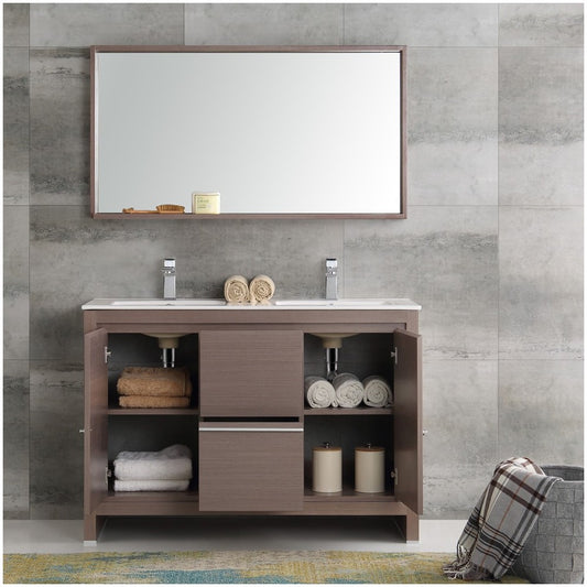Fresca Allier 48" Gray Oak Modern Double Sink Bathroom Vanity w/ Mirror