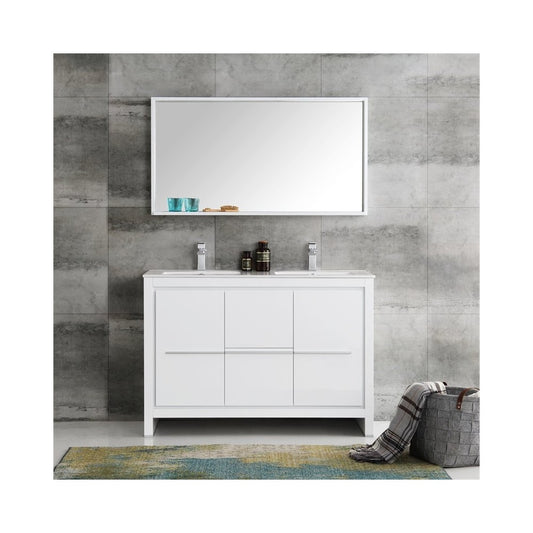 Fresca Allier 48" White Modern Bathroom Vanity w/ Mirror
