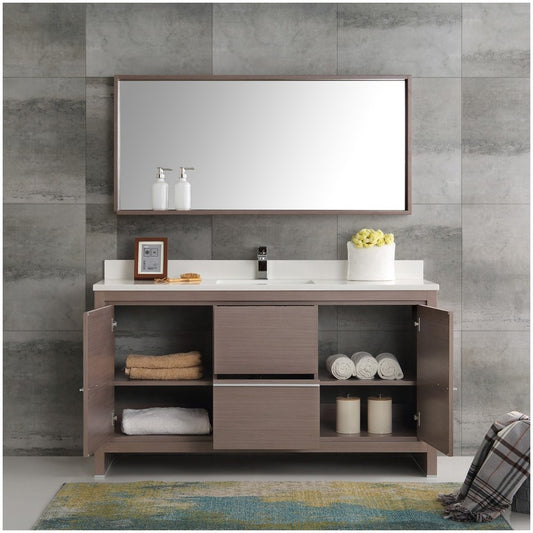 Fresca Allier Rio 60" Ash Gray Single Sink Modern Bathroom Vanity w/ Top & Sink