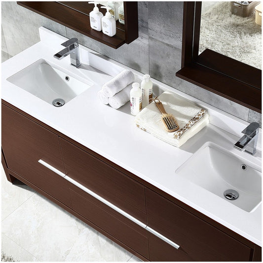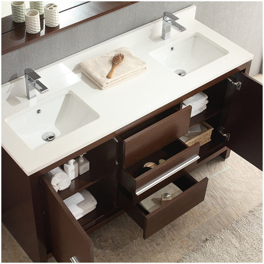 Fresca Allier 60" Wenge Brown Modern Double Sink Bathroom Vanity w/ Mirror