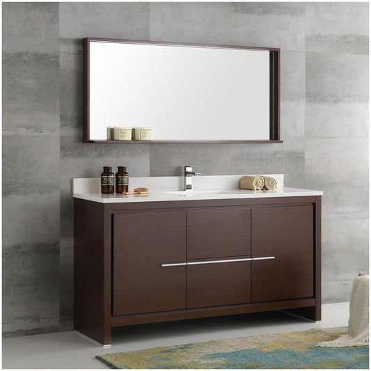 Fresca Allier 60" Wenge Brown Modern Single Sink Bathroom Vanity w/ Mirror