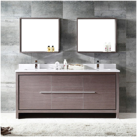 Fresca Allier 72" Gray Oak Modern Double Sink Bathroom Vanity w/ Mirror