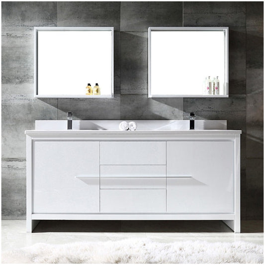 Fresca Allier 72" White Modern Double Sink Bathroom Vanity w/ Mirror
