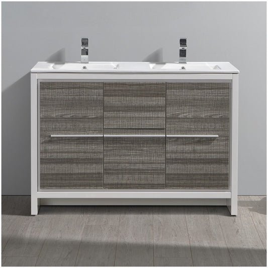 Fresca Allier Rio 48" Ash Gray Double Sink Modern Bathroom Vanity w/ Sink