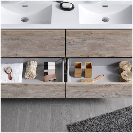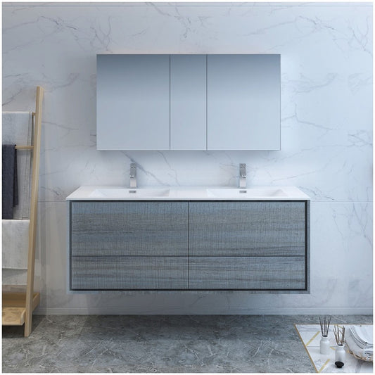 Catania 60 Ocean Gray Wall Hung Double Sink Bathroom Vanity w/ Medicine Cabinet