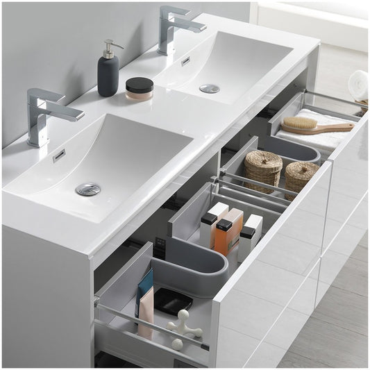 Catania 60 White Wall Hung Double Sink Bathroom Vanity w/ Medicine Cabinet
