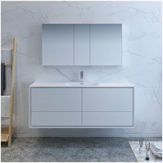 Catania 60 White Wall Hung Single Sink Bathroom Vanity w/ Medicine Cabinet