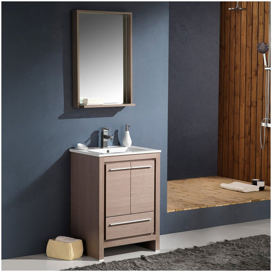 Fresca Allier 24" Gray Oak Modern Bathroom Vanity w/ Mirror
