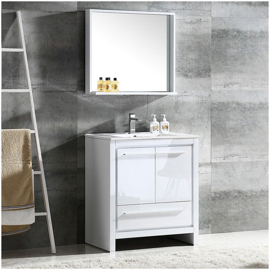 Fresca Allier 30" White Modern Bathroom Vanity w/ Mirror