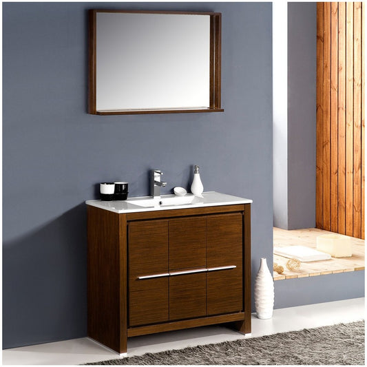 Fresca Allier 36" Wenge Brown Modern Bathroom Vanity w/ Mirror