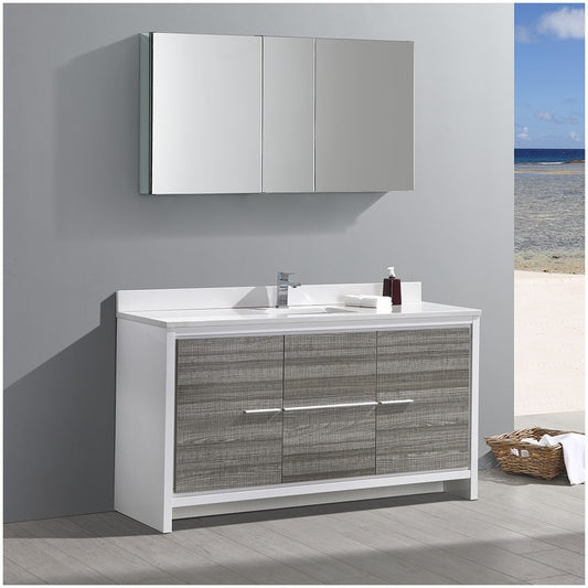 Allier Rio 60" Ash Gray Single Sink Modern Bathroom Vanity w/ Medicine Cabinet