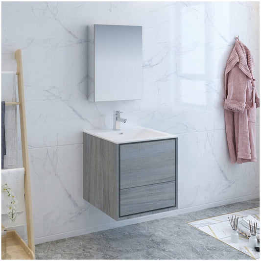 Catania 24" Glossy Ash Gray Wall Hung Modern Bathroom Vanity w/ Medicine Cabinet