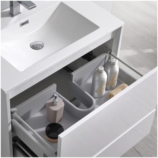 Catania 30" Glossy White Wall Hung Modern Bathroom Vanity w/ Medicine Cabinet
