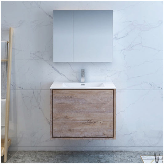 Catania 30 Natural Wood Wall Hung Modern Bathroom Vanity w/ Medicine Cabinet