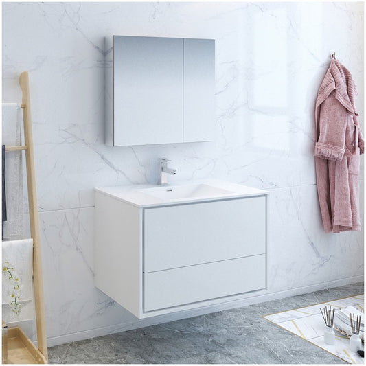 Catania 36" Glossy White Wall Hung Modern Bathroom Vanity w/ Medicine Cabinet