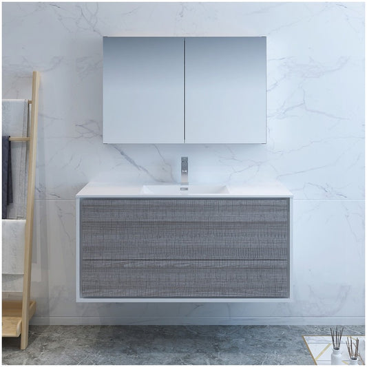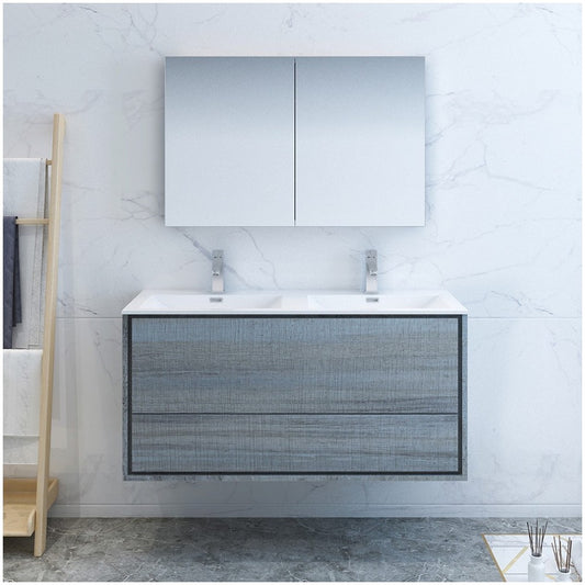 Catania 48" Ocean Gray Wall Hung Modern Bathroom Vanity w/ Medicine Cabinet