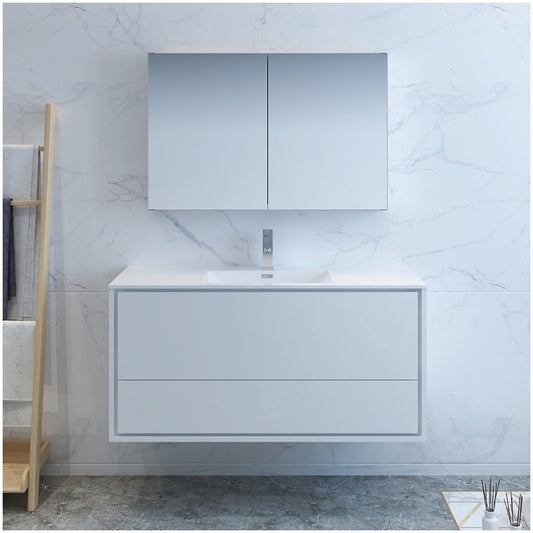 Catania 48" Glossy White Wall Hung Modern Bathroom Vanity w/ Medicine Cabinet