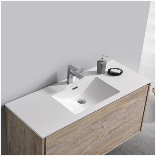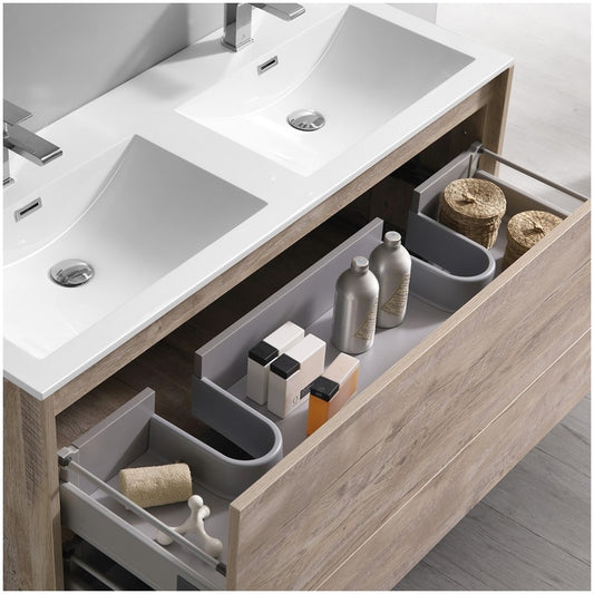 Catania 48 Natural Wood Wall Hung Modern Bathroom Vanity w/ Medicine Cabinet