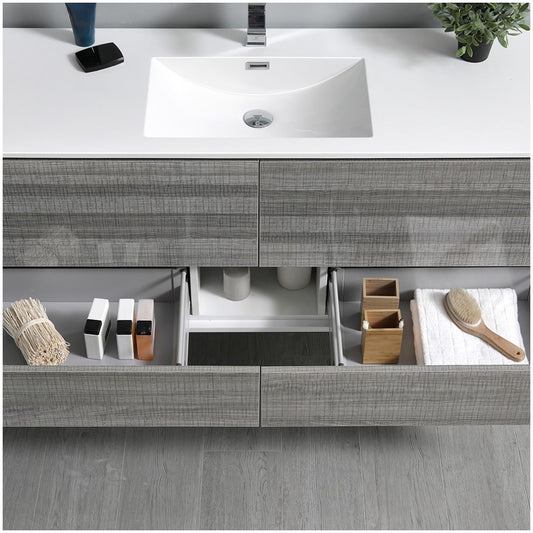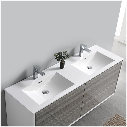 Allier Rio 60" Ash Gray Double Sink Modern Bathroom Vanity w/ Medicine Cabinet