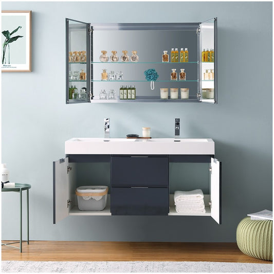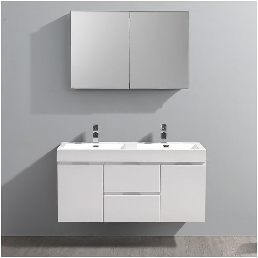 48 White Wall Hung Double Sink Modern Bathroom Vanity w/ Medicine Cabinet