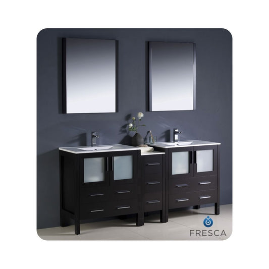 72 Espresso Double Sink Bathroom Vanity w/ Side Cabinet & Integrated Sinks