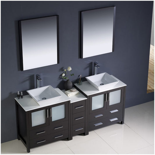 72 Espresso Modern Double Sink Bathroom Vanity w/ Side Cabinet & Vessel Sinks