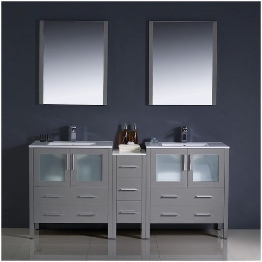 72 Gray Modern Double Sink Bathroom Vanity w/ Side Cabinet & Integrated Sinks