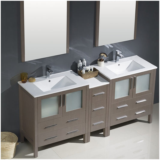 72 Gray Oak Double Sink Bathroom Vanity w/ Side Cabinet & Integrated Sinks