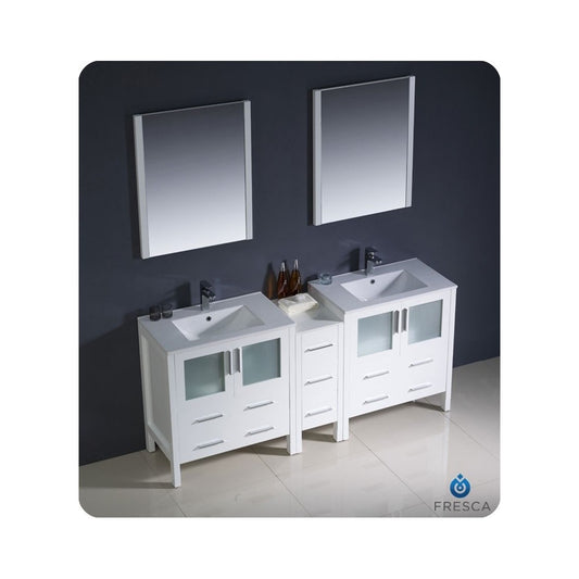 72 White Modern Double Sink Bathroom Vanity w/ Side Cabinet & Integrated Sinks