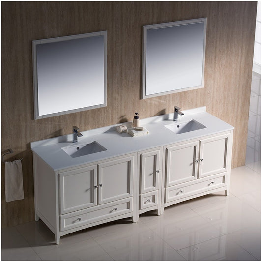 Fresca Oxford 84" Antique White Traditional Double Sink Bathroom Vanity