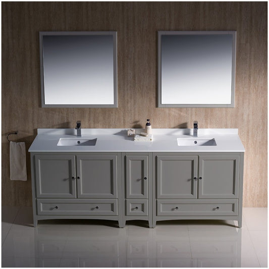Fresca Oxford 84" Gray Traditional Double Sink Bathroom Vanity