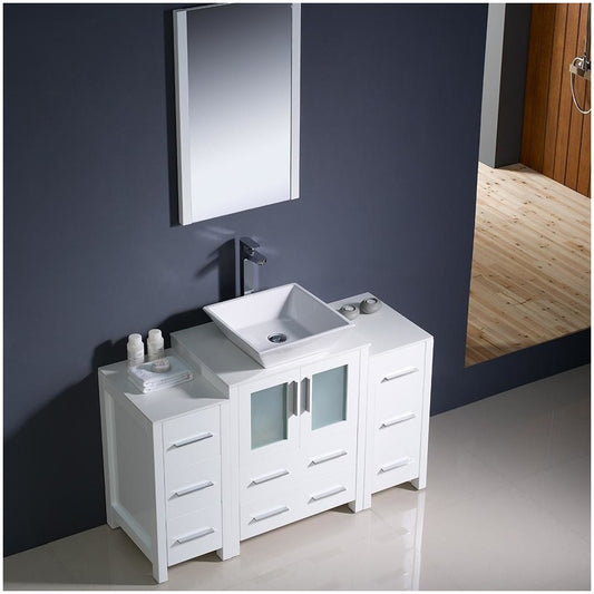 Fresca Torino 54" White Modern Bathroom Vanity w/ 2 Side Cabinets & Vessel Sink