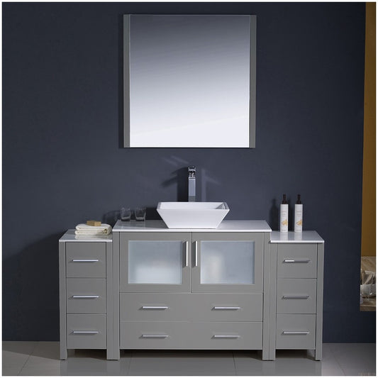 Fresca Torino 60" Gray Modern Bathroom Vanity w/ 2 Side Cabinets & Vessel Sink