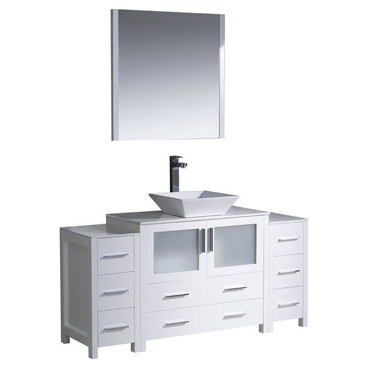 Fresca Torino 60" White Modern Bathroom Vanity w/ 2 Side Cabinets & Vessel Sink