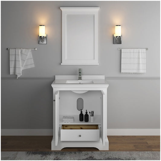 Fresca Windsor 30" Matte White Traditional Bathroom Vanity w/ Mirror