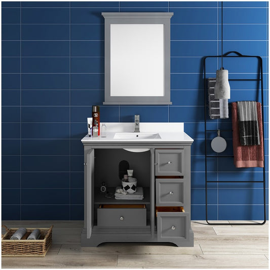 Fresca Windsor 36" Gray Textured Traditional Bathroom Vanity w/ Mirror