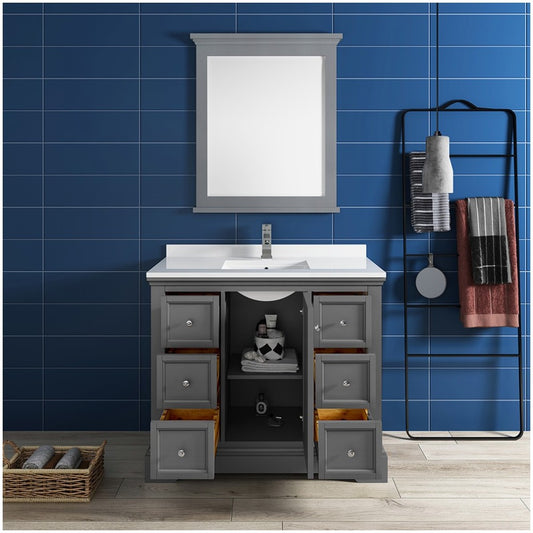 Fresca Windsor 40" Gray Textured Traditional Bathroom Vanity w/ Mirror