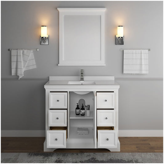 Fresca Windsor 40" Matte White Traditional Bathroom Vanity w/ Mirror